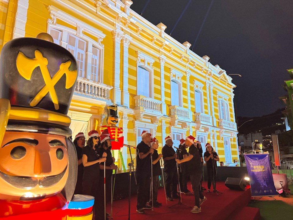 Emoção. Esse foi o sentimento que transbordou durante a apresentação especial do Coral Vozes que Inspiram, projeto social desenvolvido pela Imprensa Oficial do Espírito Santo (DIO/ES). O espetáculo integrou a programação do “Natal nos Jardins do Palácio Anchieta”, na última quinta-feira (18), e reuniu público expressivo no Centro Histórico da Capital.